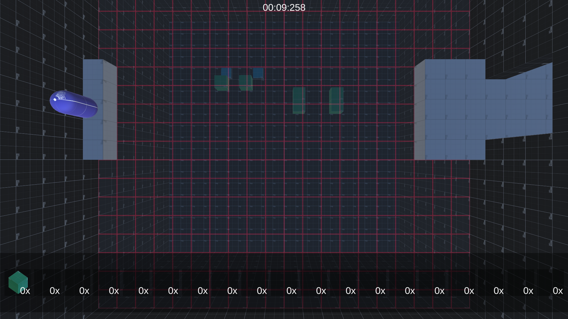 Note: The blocks below are your inventory for building, click them to use the objects (there is no image for the 2x1x1 and jump pad blocks but it is that order respectively) if you click on a different item in your inventory when you have not finished using the object you are currently using it will place it down, THIS IS A BUG I HAVE NOT FIXED YET.